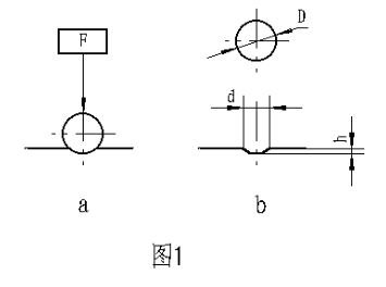 金屬布氏硬度試驗系采用一定直徑硬質(zhì)合金球,以規(guī)定試驗力壓入被測材料表面(圖1a)按規(guī)定保持時間后,卸除試驗力,(圖1b)測量試樣表面的壓痕直徑,以計算出布氏硬度,并以下式計算之: