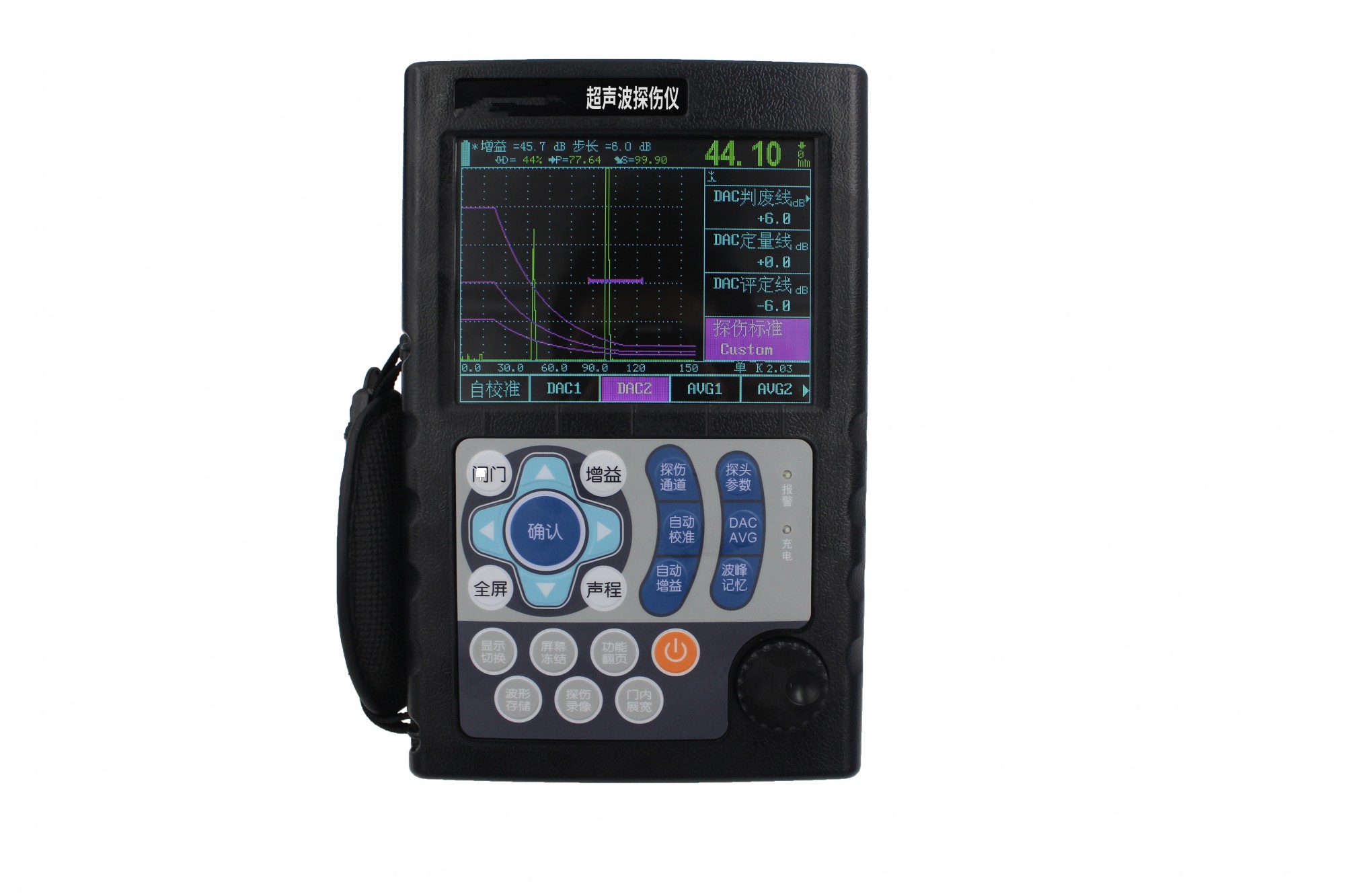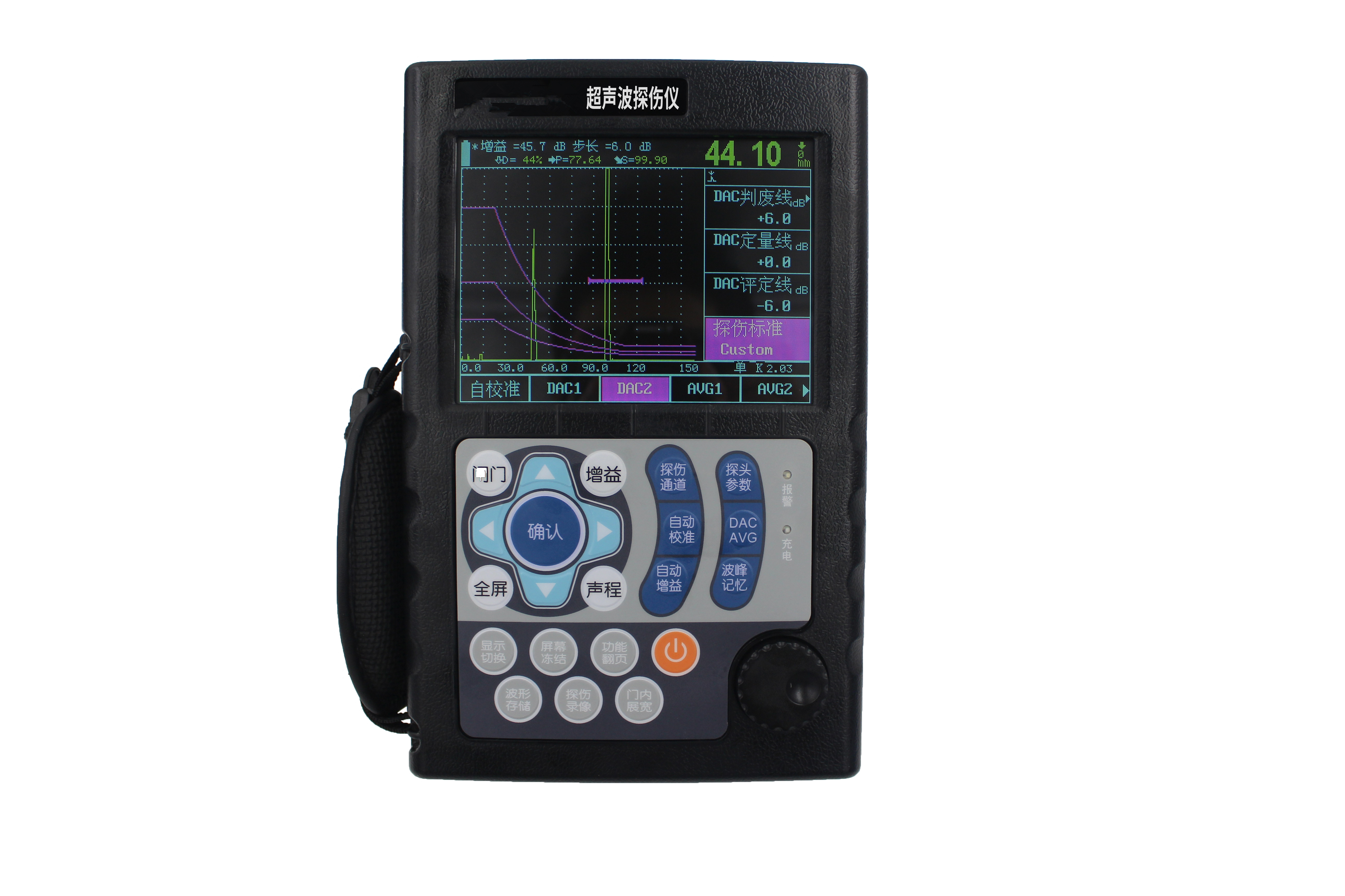 ●自動增益、回波包絡、峰值記憶功能提高了探傷效率;